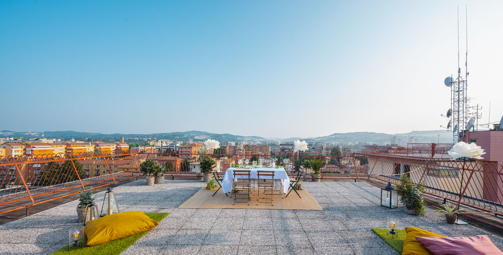 Si accede dalla scala condominiale. Un luogo fuori dal tempo: la più alta di Bologna, esclusiva, spettacolare, tutta tua. Uno spazio da vivere e reinventare: per cene sotto le stelle, aperitivi al tramonto, pratiche di yoga all’alba, o semplicemente per rilassarti in un solarium privato, tra piante e divani all’aperto. Immagina una vasca idromassaggio, un angolo bar, una piccola palestra all’aria aperta... qui puoi realizzare tutto questo.